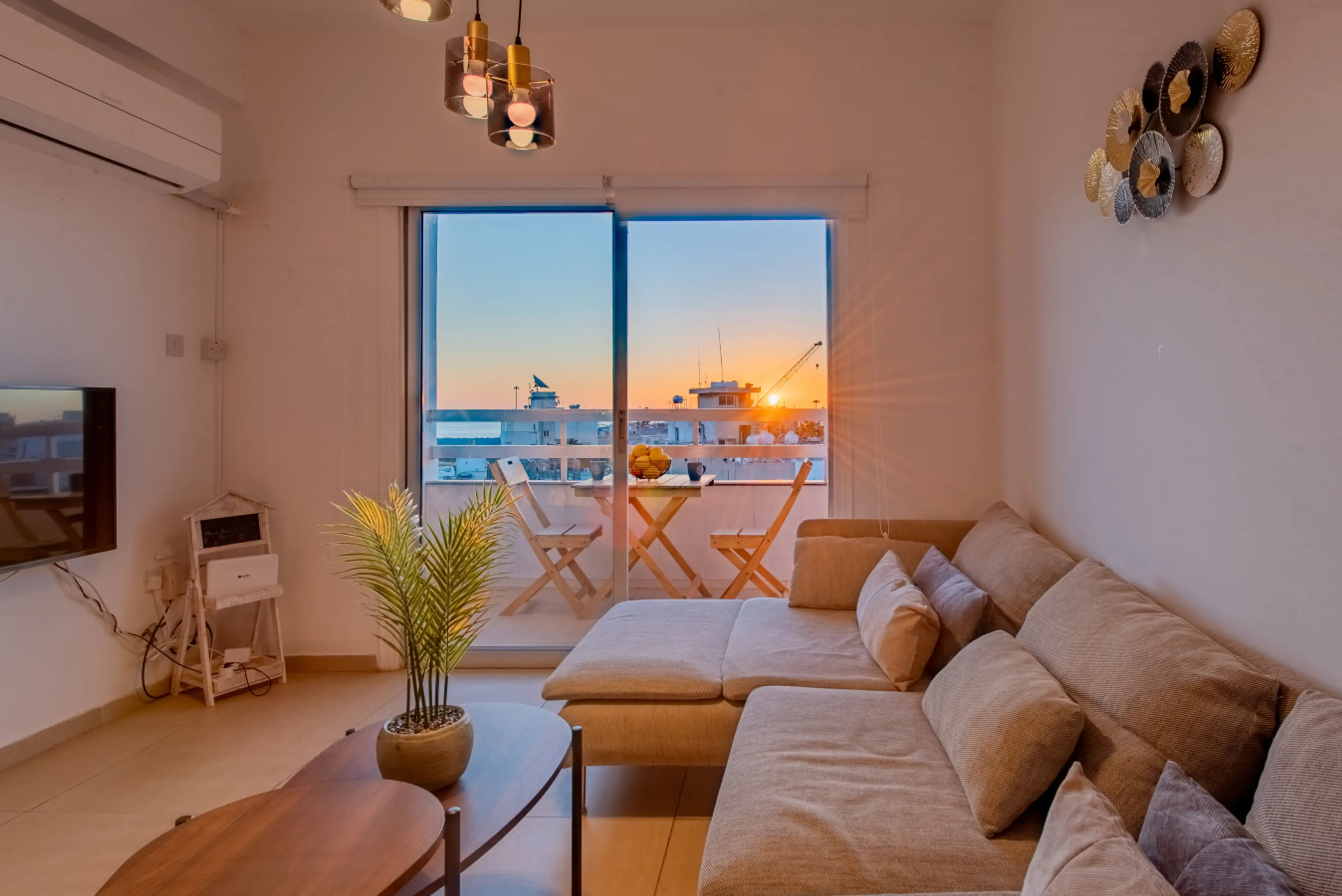 Enjoy a premium stay in this brand-new, modern 2-bedroom apartment near the heart of Larnaka. The sleek, fully equipped kitchen makes meal prep effortless. Unwind on the spacious balcony with a lively city vibe, or relax in the elegant living area with a plush sofa and smart TV. Perfect for remote ...